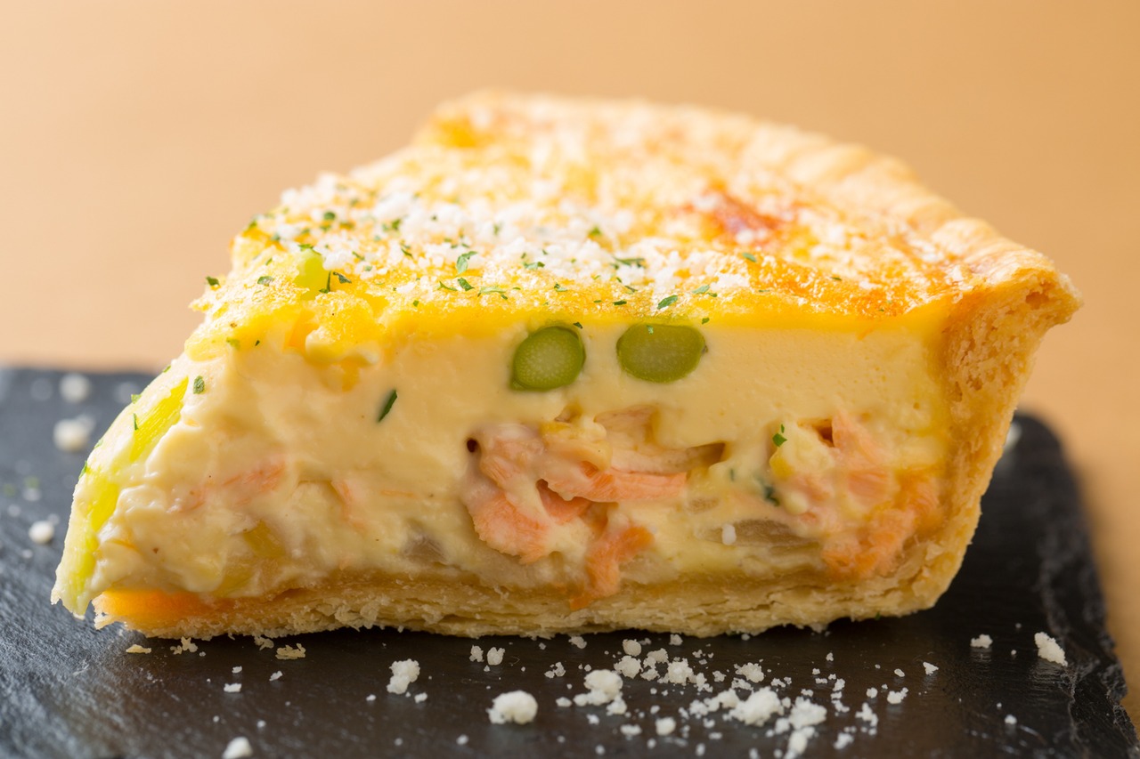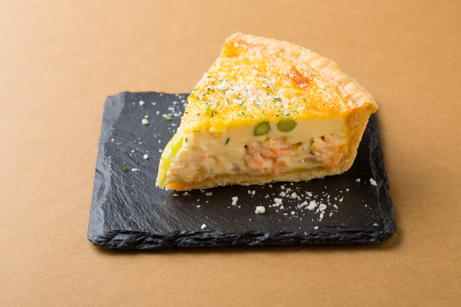 サーモンの旨みと旬の野菜を楽しめるキッシュです。